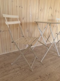 Лаконичный комплект садовой мебели. Складные стулья и столик не занимают много места для хранения, а компактные размеры и небольшой вес позволяют брать их с собой на пикник или дачу. Комплект изготовлен из металла, а поверхность покрыта слоем краски, которая обеспечивает влагостойкость и легкий уход. Изогнутые ножки с подпятниками позволяют устойчиво установить мебель на любой поверхности. Простой дизайн комплекта дополнит любой дачный участок, веранду или фудкорт. Стулья выдерживают нагрузку до 120 кг.